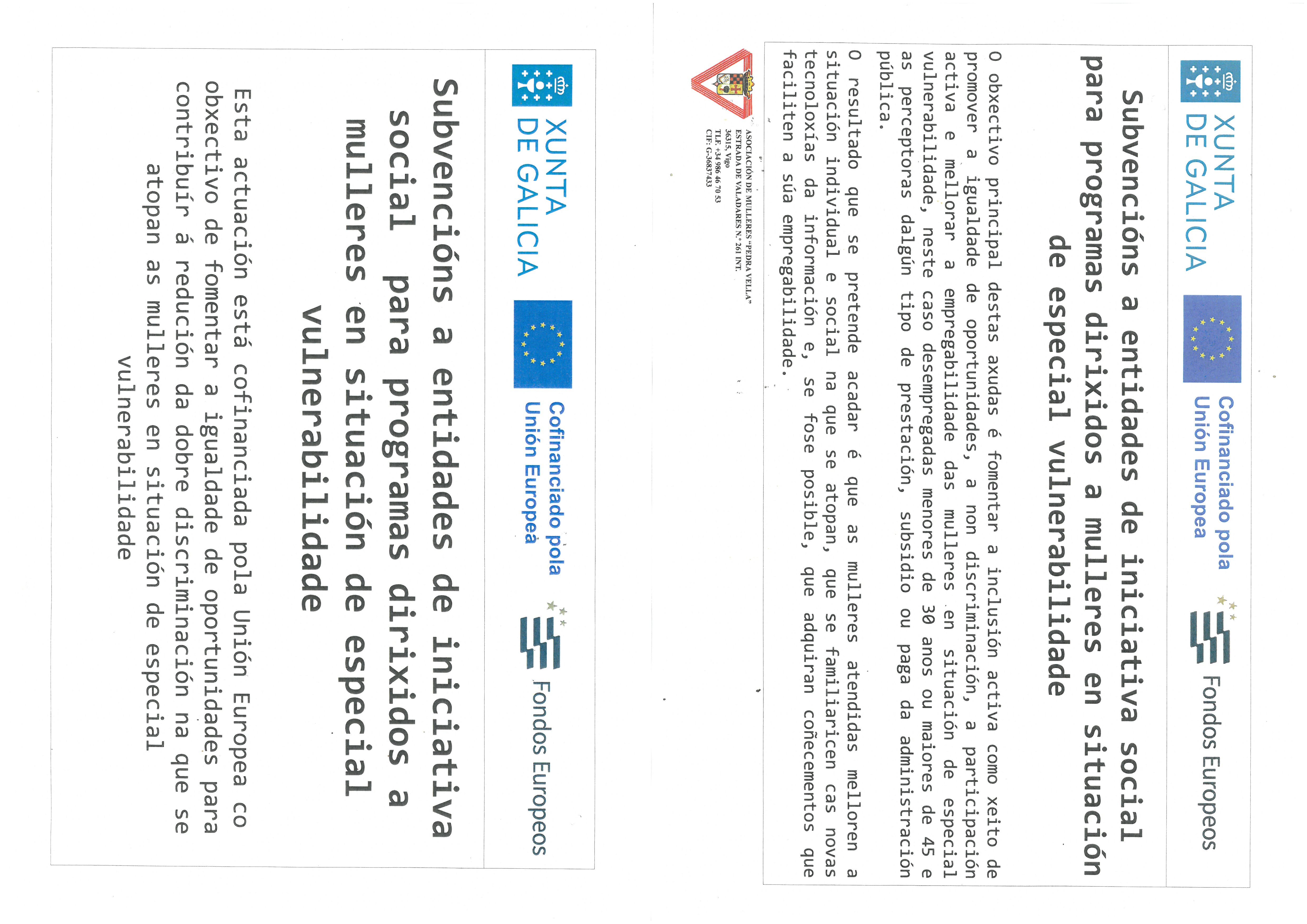 SUBVENCIÓNS A ENTIDADES DE INICIATIVA SOCIAL PARA PROGRAMAS DIRIXIDOS A MULLERES EN SITUACIÓN DE ESPECIAL VULNERABILIDADE